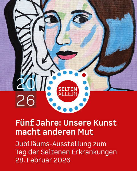 Die Kunstaktion „Selten allein“ macht die Lebensrealität von Menschen mit Seltenen Erkrankungen sichtbar. In Form von Selbstporträts – gemalt, gezeichnet oder fotografiert – zeigen Betroffene ihre Perspektive und teilen ihre persönlichen Geschichten.